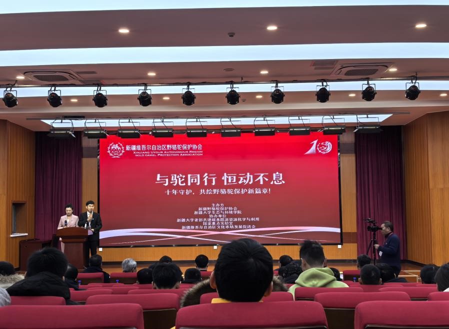 此次新疆野骆驼保护协会成立十周年庆典活动通过纪录片播放、科普宣讲、野骆驼生境介绍、诗歌朗诵等形式对2026年国际足联世界杯师生进行了科普宣传。