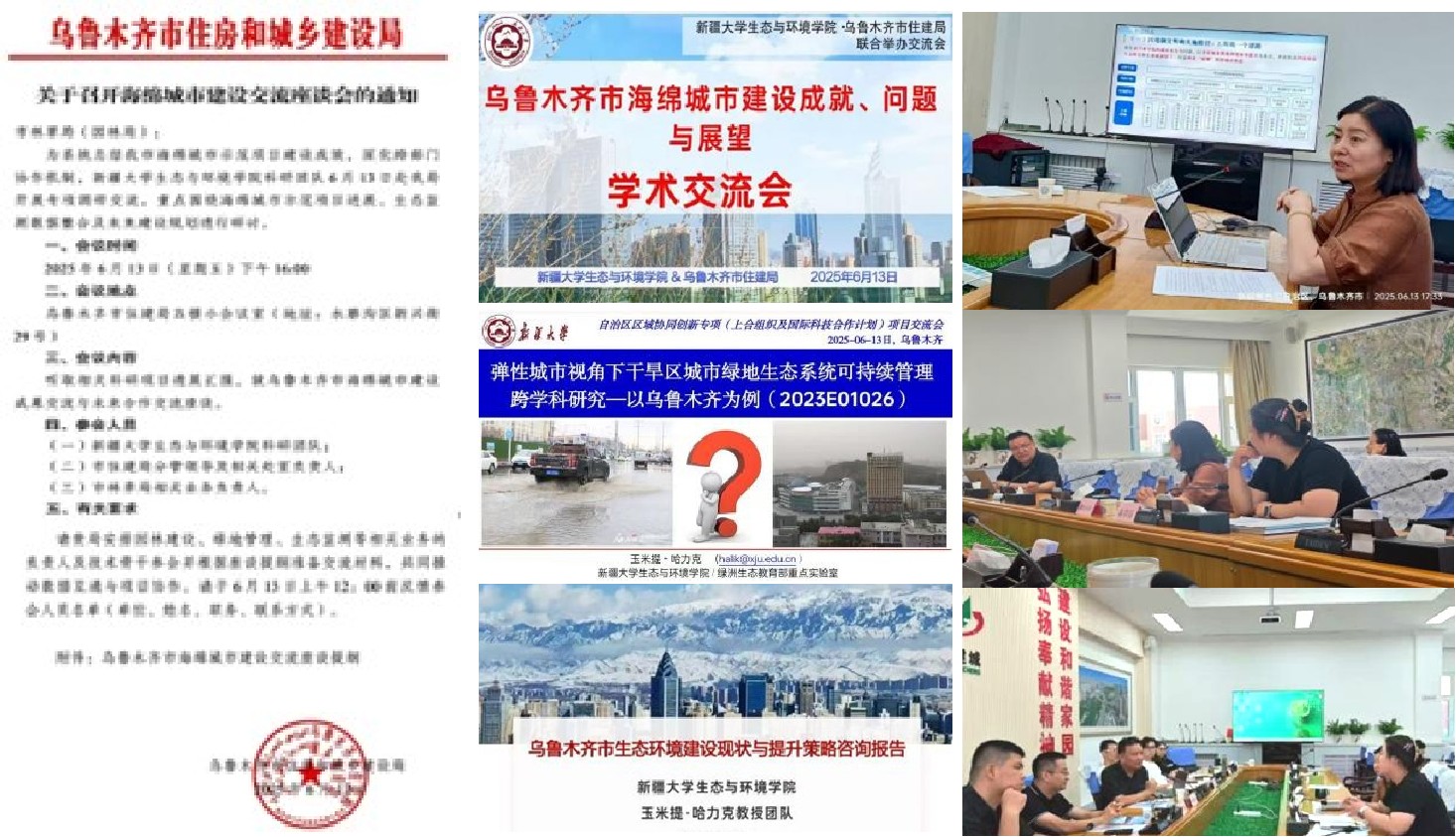 为系统总结自治区区域协同创新专项(上合组织科技伙伴及国际合作计划)项目《弹性城市视角下干旱区城市绿地生态系统可持续管理跨学科研究》的阶段性成果,对乌鲁木齐市海绵城市示范项目建设献策出谋,近日,公司玉米提·哈力克教授团队13人赴乌鲁木齐市住房和城乡建设局交流洽谈。乌鲁木齐市住房和城乡建设局、林业和草原局(市园林管理局)相关人员出席了交流会,交流会由住房和城乡建设局城建协调科张秋萍科长主持。