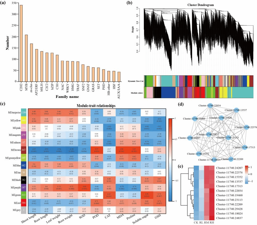 图1  转录因子(TF)加权基因共表达网络分析(WGCNA)的结果