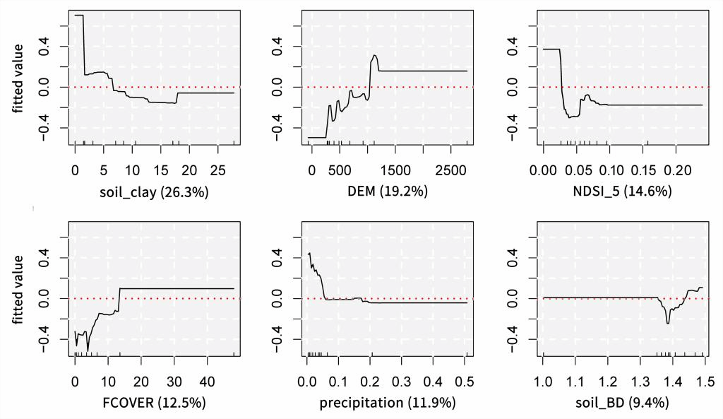 图2 六个最具影响力的变量的部分依赖关系图