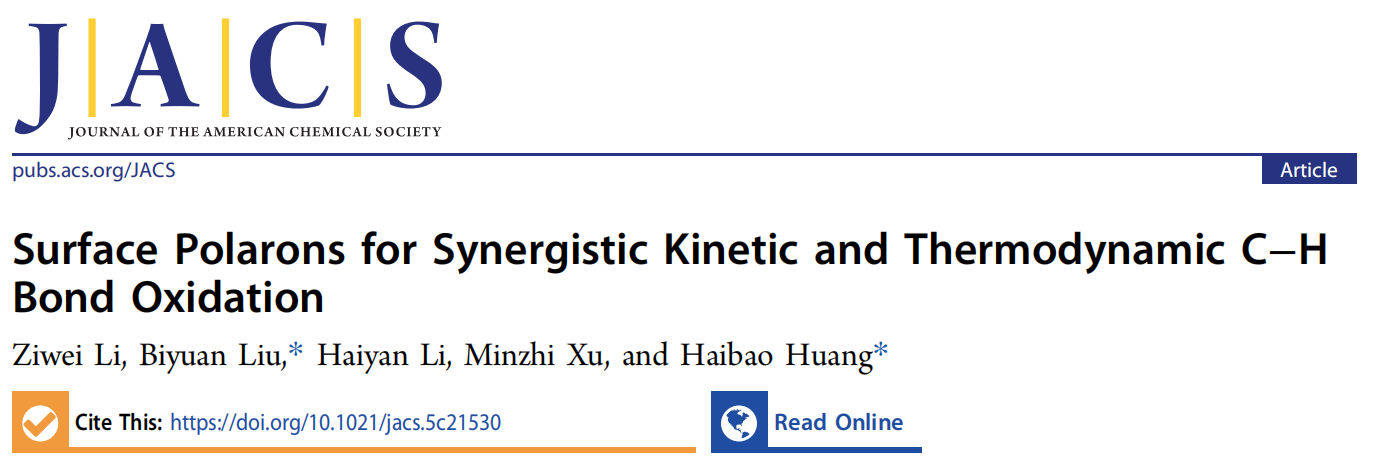 2026年2月24日,公司黄海保教授课题组在化学1区期刊Journal of the American Chemical Society上发表题为“Surface Polarons for Synergistic Kinetic and Thermodynamic C−H Bond Oxidation”的研究论文,证实了表面极化子可同时调控电荷动力学与表面催化,论文第一作者为硕士研究生李紫薇。